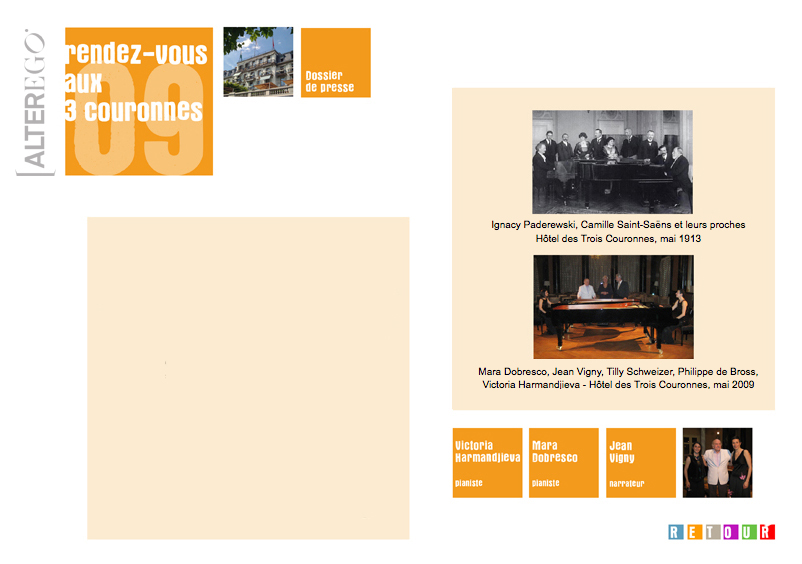 Il y a tout juste un siècle que quelques-uns parmi les plus illustres musiciens du 20e siècle ont élu pour domicile et lieu de travail la région de la Riviera: Igor Strawinski, Ernest Ansermet, Ignacy Paderewski, Maurice Ravel, Camille Saint-Saëns, Gustav Doret, Clara Haskil, etc. Cette précieuse kyrielle de compositeurs, interprètes et chefs d'orchestre a laissé une profonde empreinte dans la conscience culturelle commune de cette région et de la ville de Vevey. Et l'héritage de leur oeuvre est, sans doute,, encore porteur d'un élan et d'un potentiel créatif pour les artistes qui y travaillent actuellement.